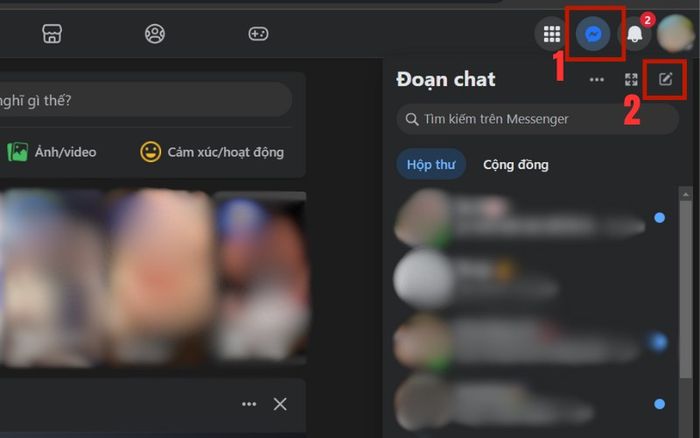 Bước 1: Đăng nhập vào Facebook trên máy tính > Truy cập Messenger > Nhấn vào biểu tượng hình cây bút ở góc phải màn hình.