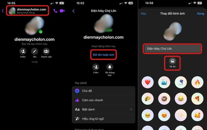 Thay đổi tên và ảnh nhóm trên Messenger: Chọn tên nhóm > Nhấn vào ‘Đổi tên hoặc ảnh’ > Nhập tên mới và chọn ảnh từ thư viện > Nhấn ‘Xong’ để hoàn tất.