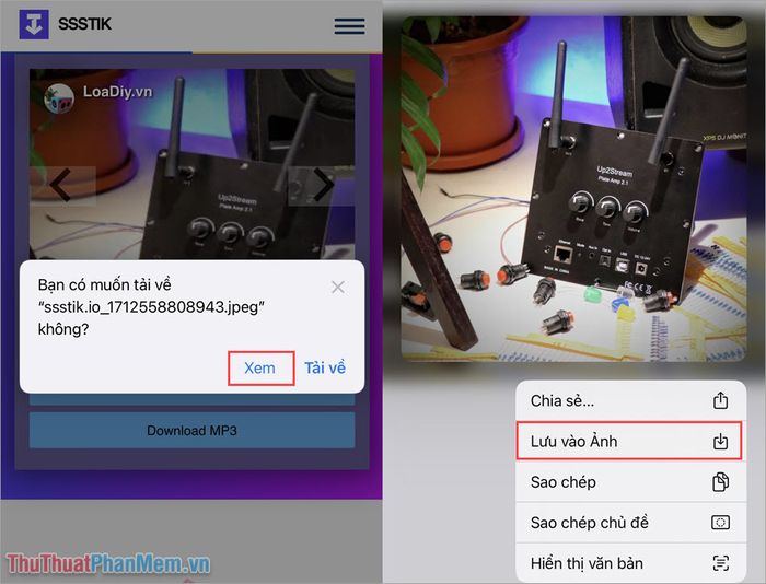 Trên điện thoại Android, nhấn Tải về để hoàn tất quá trình lưu ảnh vào điện thoại. Còn với iPhone, hãy tham khảo bước tiếp theo để lưu trực tiếp vào Album ảnh của bạn.