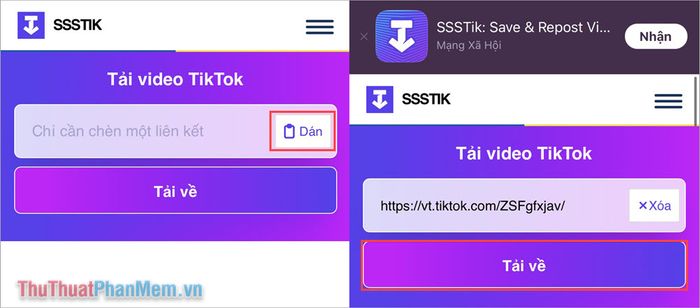 Bước 2: Truy cập vào trang web SSSTik, dán đường link vào ô tìm kiếm và nhấn SSSTik để bắt đầu tải về các hình ảnh trong Video TikTok.