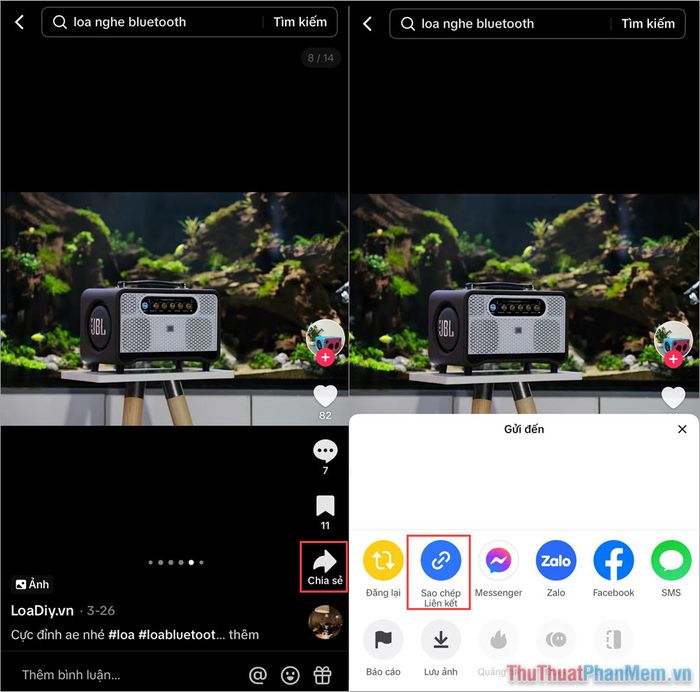 Bước 2: Mở Video TikTok chứa ảnh bạn muốn lưu, nhấn vào mục Chia sẻ và chọn Sao chép Liên kết để lấy đường link hình ảnh.