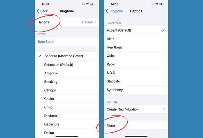 Chọn “None” để tắt hoàn toàn chế độ rung