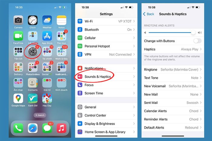 Vào phần cài đặt và chọn mục “Âm thanh & Cảm ứng” (Sounds & Haptics)