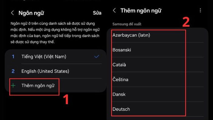 Bước 2: Chọn Thêm ngôn ngữ → Lựa chọn ngôn ngữ bạn muốn thêm vào (ví dụ: Tiếng Anh, Tiếng Hàn…).