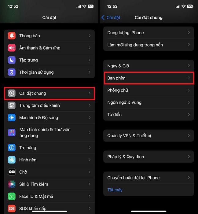 Vào mục Bàn phím trong phần Cài đặt chung của iPhone