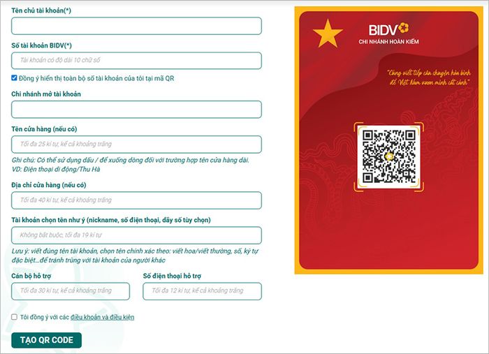 Cách tạo mã QR ngân hàng BIDV
