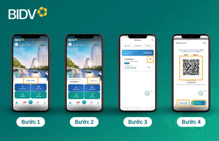 Phương pháp tạo mã QR BIDV thông dụng này cho phép bạn thiết lập trực tiếp từ điện thoại thông minh thông qua ứng dụng BIDV SmartBanking. Bạn có thể lựa chọn tạo một trong hai dạng mã: mã QR cá nhân cố định hoặc mã QR có kèm theo một số tiền xác định trước. Quy trình thực hiện chi tiết bao gồm các bước sau: