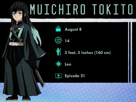 Muichiro Tokito (và Yuichiro Tokito) - 8 tháng 8Muichiro là Mist Hashira. Anh thường xuất hiện với vẻ ngoài thờ ơ, thậm chí có vẻ hơi lơ đãng, thường xuyên chìm đắm trong suy nghĩ của mình. Anh cũng không thể hiện nhiều cảm xúc, khiến anh có vẻ như vô cảm. Khi còn nhỏ, Muichiro rất cởi mở và đầy lòng từ bi—nhưng sau khi người anh trai song sinh Yuichiro bị quái vật tấn công và giết chết, Muichiro mất trí nhớ và trở thành một phiên bản thờ ơ của chính mình.