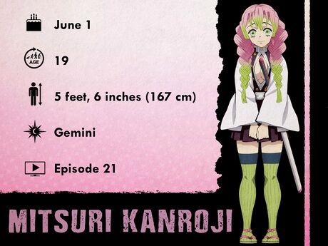 Mitsuri Kanroji - 1 tháng 6Mitsuri là Love Hashira của Demon Slayer Corps. Cô có tính cách ngọt ngào, tốt bụng và rất dễ dàng thể hiện cảm xúc—một sự đối lập với nhiều Hashira khác. Trong chiến đấu, cô sử dụng Kỹ thuật Hơi thở của Tình yêu và sở hữu sức mạnh phi thường. Thời gian đầu khi trở thành Demon Slayer, Mitsuri từng rất khao khát kết hôn; tuy nhiên, khi cô vượt qua nỗi sợ bị từ chối, cô đã khai phá được tiềm năng thực sự của mình như một Hashira.