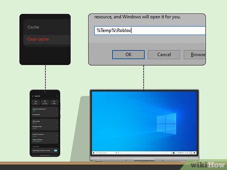 Windows: Nhấn Win + R để mở hộp thoại Run. Nhập “%Temp%\Roblox” vào Run và nhấn Enter. Xóa tất cả các tệp và thư mục trong bộ nhớ cache.