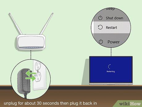 Khởi động lại thiết bị và phần cứng mạng. Nếu có sự cố với thiết bị hoặc phần cứng mạng của bạn, bạn có thể thử khắc phục bằng cách khởi động lại thiết bị của mình. Ngắt kết nối modem hoặc router khoảng 30 giây, sau đó cắm lại và đợi khoảng một phút. Khởi động lại máy tính hoặc điện thoại của bạn và thử lại.