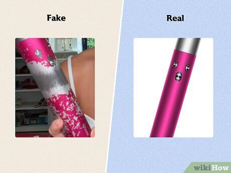 Số sê-ri và thông tin model được in thay vì khắc nổi. Trên một chiếc Dyson Airwrap thật, số sê-ri và thông tin model được khắc vào tay cầm và hòa vào màu sắc chính của sản phẩm. Trong khi đó, trên một chiếc Airwrap giả, những thông tin này thường được in lên, đôi khi lệch vị trí, và dễ nhận diện hơn.