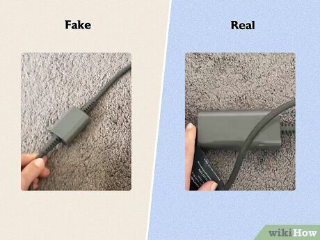 Bộ chuyển đổi cáp và phích cắm tường quá nhỏ. Trên một chiếc Dyson Airwrap thật, bộ chuyển đổi cáp nguồn (phần giống như hộp) dài khoảng 13 cm (5 inch). Phích cắm có chiều cao khoảng 5 cm (2 inch), với nút an toàn màu đỏ và vàng. Trong khi đó, bộ chuyển đổi trên một chiếc Dyson Airwrap giả thường nhỏ hơn và ngắn hơn nhiều, và phích cắm trông giống như phích cắm nhỏ bạn thấy trên một chiếc đèn bàn.