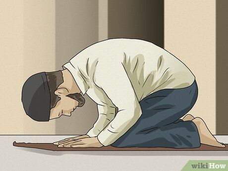 - Trong khi sujud, đảm bảo rằng trán, mũi, lòng bàn tay, đầu gối và ngón chân của bạn chạm xuống đất.