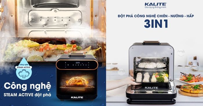 Nồi chiên không dầu hơi nước hoạt động dựa trên hai công nghệ chính: Rapid Air (chiên không dầu) và Steam Active (hấp hơi nước siêu nhiệt).