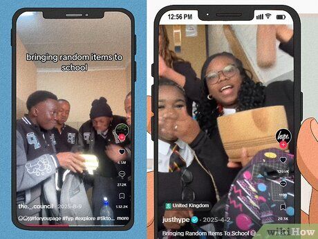 'Mang đồ vật ngẫu nhiên đến trường' là một trào lưu viral trên TikTok, nơi các bạn học sinh quay video lôi ra những món đồ ngẫu nhiên từ ba lô của mình để khiến bạn bè cười. Những món đồ này có thể là những vật dụng trang trí kỳ quái, dụng cụ vệ sinh, hay đồ chơi. Một số người thậm chí còn nhồi nước vào má trước khi tiết lộ, để nước văng ra khắp nơi.