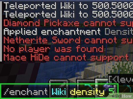 - Ví dụ: /enchant player_name density 5 sẽ thêm Density V vào Mace đang cầm (thay player_name bằng tên nhân vật của bạn).