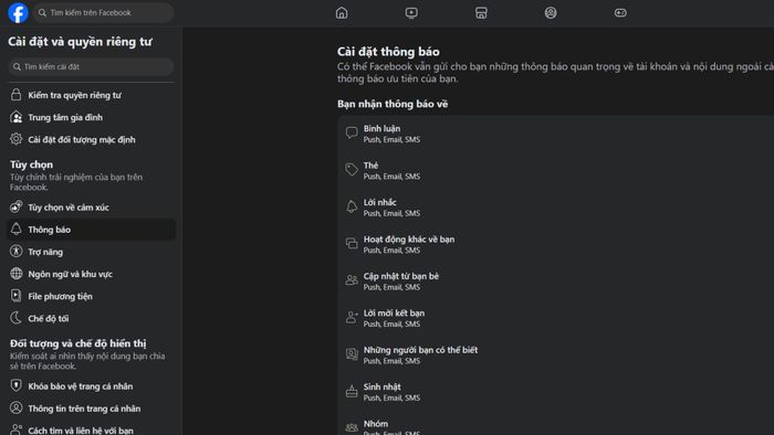 - Hệ thống thông báo từ Facebook