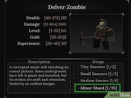 Miner Shard: May mắn (Tăng may mắn lên đến 16%), Thu hoạch (Cơ hội rơi thêm 1 quặng khi khai thác), Khai thác nhanh (Tăng tốc độ khai thác), hoặc Sức mạnh khai thác (Tăng sát thương khi khai thác)