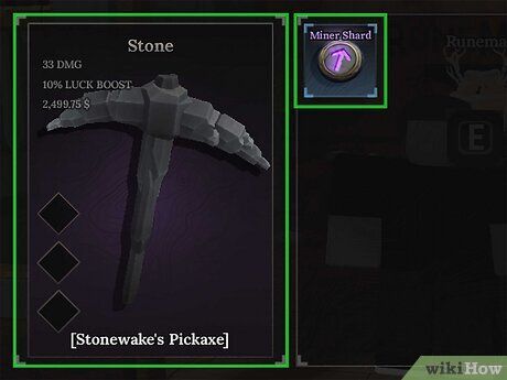 Cuốc xẻng: Rune duy nhất bạn có thể sử dụng trên cuốc xẻng là Miner Shards. Miner Shards có thể có một trong 4 thuộc tính—May mắn có lẽ là thuộc tính tốt nhất vì bạn sẽ có nhiều khả năng tìm thấy quặng hiếm. Hãy thử sử dụng các viên shard May mắn có tỷ lệ gần 16%—nếu bạn ghép 3 viên shard May mắn, mỗi viên 16%, bạn sẽ có tổng cộng 48% May mắn.