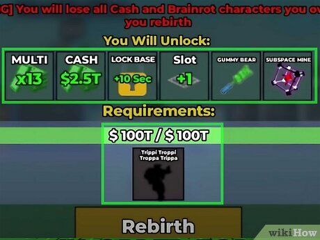 - Những Brainrot cần thiết cho Tái Sinh thường tạo ra một lượng thu nhập lớn, vì vậy việc thu thập chúng sẽ giúp bạn đạt được mục tiêu tiền nhanh hơn.