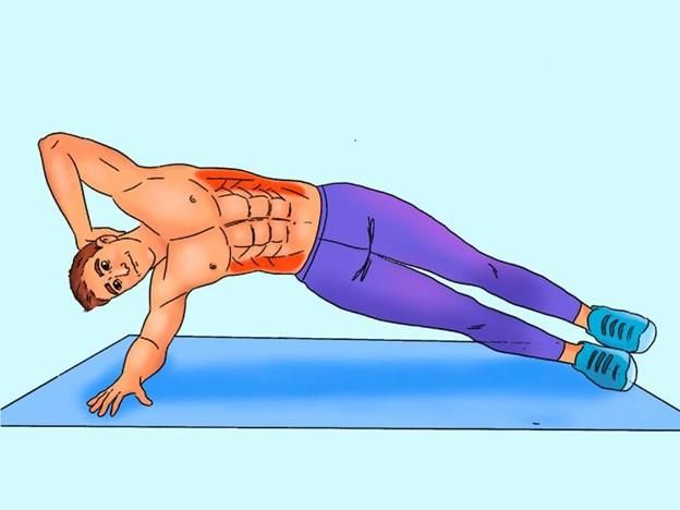 Gập bụng chéo là phương pháp hiệu quả để tăng cường sức mạnh nhóm cơ liên sườn. Ở cấp độ nâng cao, bạn bắt đầu bằng tư thế plank nghiêng, đặt tay sau đầu rồi thực hiện động tác gập người sang bên. Khi hạ đầu xuống thì nâng thân lên và ngược lại. Duy trì bài tập liên tục 50 giây rồi nghỉ ngắn 10 giây giữa các hiệp.