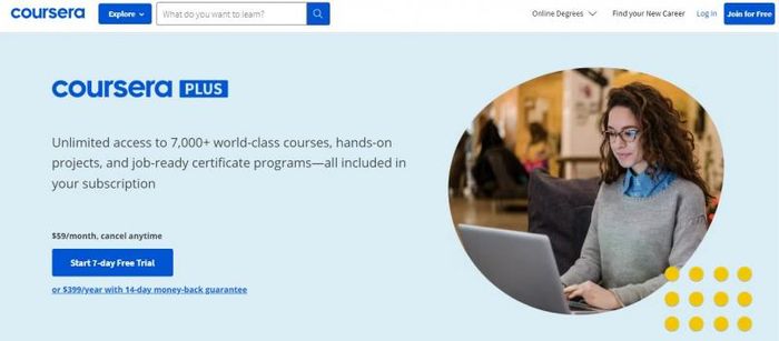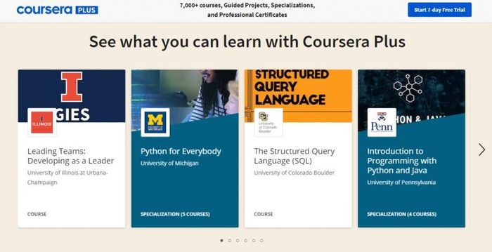 Trang web Coursera là nền tảng học trực tuyến hàng đầu, cung cấp các khóa học, chương trình chứng chỉ và bằng cấp từ những trường đại học và tổ chức giáo dục uy tín trên toàn thế giới. Coursera mang đến cho người học cơ hội tham gia hàng trăm ngàn khóa học đa dạng về các lĩnh vực như khoa học máy tính, kinh doanh, ngôn ngữ học, nghệ thuật, khoa học xã hội, y tế, và nhiều ngành nghề khác.