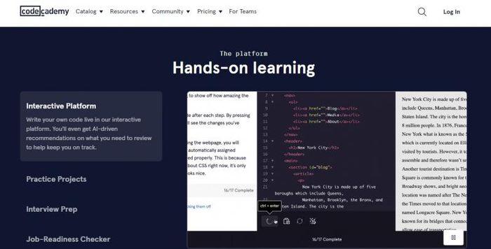 Website: https://www.codecademy.com/