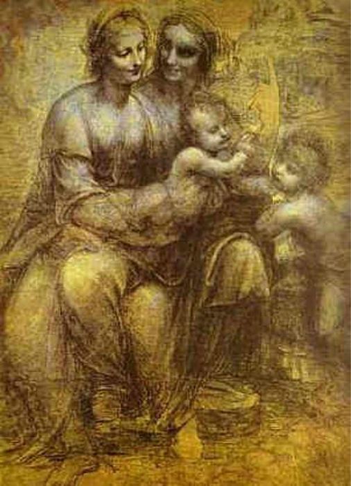 Bức tranh The Virgin and Child with St Anne and St John the Baptist, hay còn gọi là Đức Trinh Nữ và con gái của Thánh Anne cùng Gioan Thánh Tẩy Giả, được vẽ vào khoảng năm 1499 đến 1500. Trong bức họa này, đứa trẻ sơ sinh trong tay mẹ Maria đang cầm một con chiên con, biểu tượng cho chính mình, như cách mà Chúa Giêsu được gọi là "con chiên của Chúa". Cái đầu của con chiên cùng những lọn tóc mềm mại của đứa trẻ tạo thành một sự kết nối hình ảnh thú vị.