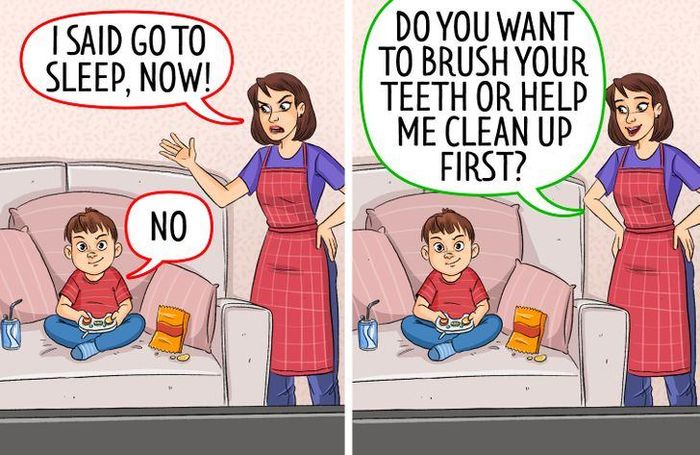 Trợ lý giáo sư Angie T. Cranor cho biết rằng việc cho trẻ quyền tự lựa chọn giúp trẻ cảm thấy có sự kiểm soát. Ví dụ, nếu trẻ cần dọn đồ chơi và đánh răng, hãy để trẻ quyết định làm việc nào trước. Những tình huống đơn giản như vậy là mẹo hay giúp trẻ cảm thấy thoải mái và hạnh phúc trong cuộc sống hàng ngày.