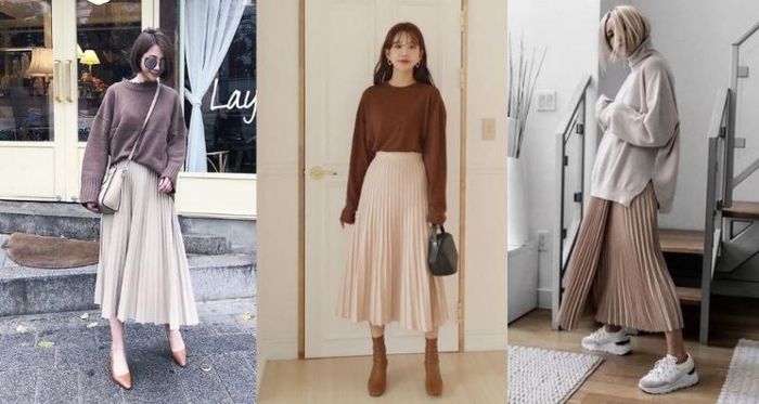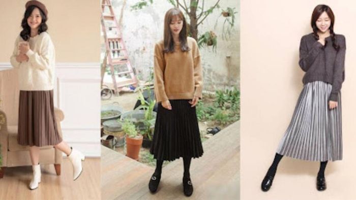 Khi chọn chân váy midi, bạn nên chú ý đến độ dài và kiểu dáng sao cho phù hợp. Váy có thể làm từ chất liệu mềm mại như cotton, ren hay lụa, giúp tạo sự thoải mái nhưng vẫn rất thanh lịch. Ngoài ra, bạn cũng có thể chọn váy có họa tiết, hoa văn để tăng phần nổi bật cho bộ trang phục. Khi đã hoàn thành set đồ với áo sweater và chân váy midi, đừng quên lựa chọn phụ kiện phù hợp để tạo nên tổng thể hoàn hảo. Giày cao gót là sự lựa chọn tuyệt vời nếu bạn muốn tăng sự quý phái, hoặc sneaker giúp bạn có vẻ ngoài trẻ trung và năng động.