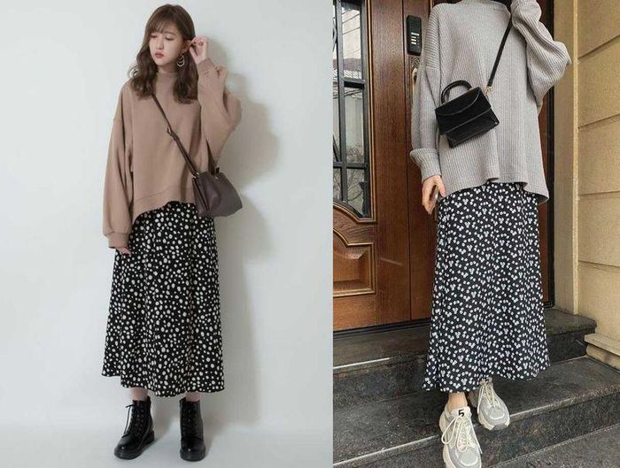 1. Mix áo sweater với chân váy midi