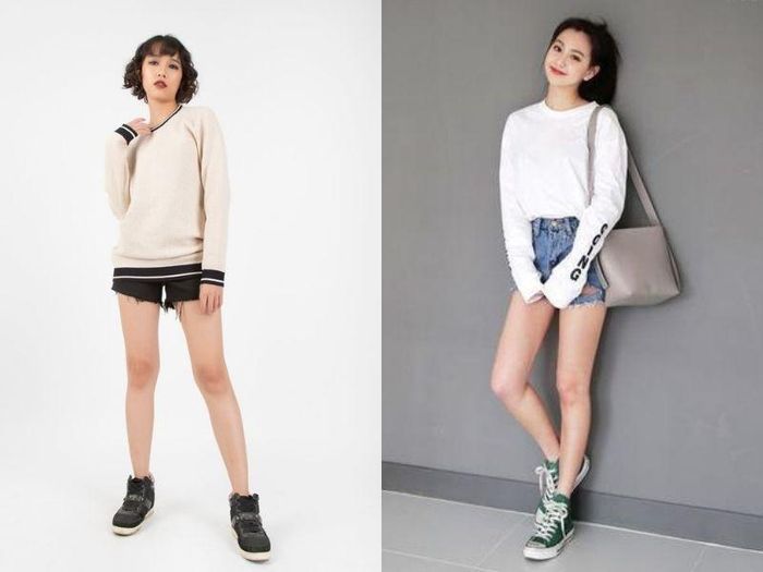 Việc phối áo sweater cùng quần short là lựa chọn tuyệt vời cho những ngày hè oi ả. Đây là một phong cách thời trang không bao giờ lỗi mốt, giúp phái đẹp “giấu quần” nhưng vẫn giữ được vẻ ngoài năng động và sành điệu. Bạn có thể chọn áo sweater với các họa tiết như hoa lá, chữ in hay những hình vẽ bắt mắt để tạo thêm phần nổi bật cho bộ trang phục. Kết hợp với một chiếc quần short đơn giản, set đồ của bạn chắc chắn sẽ thu hút sự chú ý.
