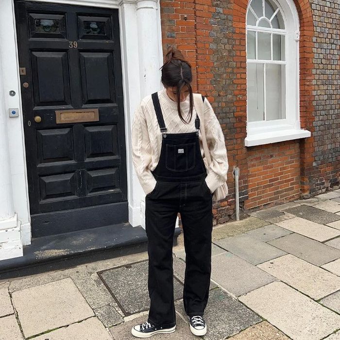 6. Mix áo sweater với yếm jeans