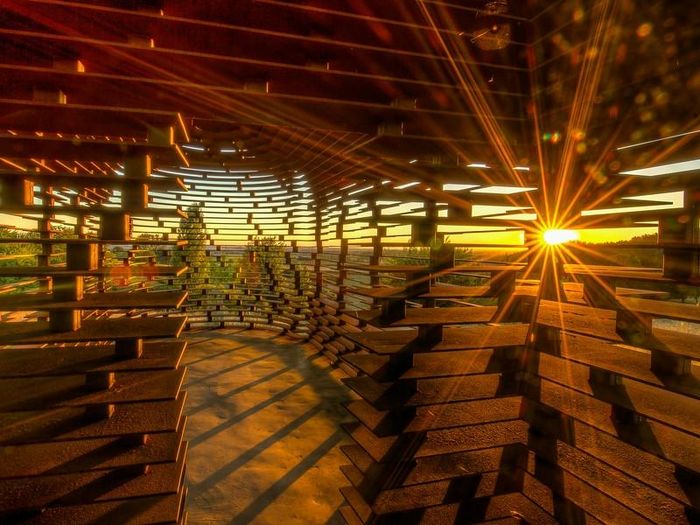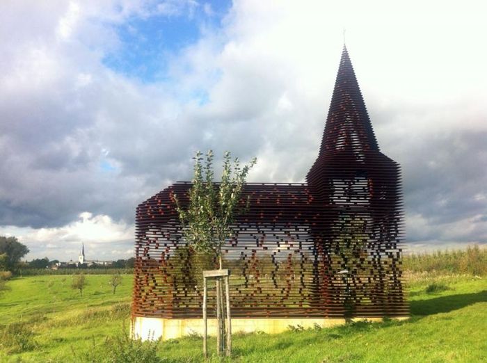 Nhà thờ này chắc chắn sẽ khiến bạn phải bất ngờ với kiến trúc độc đáo. Nhà thờ Reading Between The Lines được xây dựng hoàn toàn từ những tấm thép mỏng. Đặc biệt, các tấm thép này được sắp xếp cách nhau tạo thành các khe hở, khiến tòa nhà gần như trở nên vô hình khi nhìn từ một góc ngang. Đứng ở phía trước, bạn có thể nhìn thấy người đứng sau tòa nhà, tạo nên hiệu ứng ảo diệu cho không gian. Chính vì vậy mà tên gọi của nhà thờ mang một ý nghĩa đặc biệt, “thấu hiểu những điều chưa được nói ra”. Năm 2012, công trình này đã được tạp chí Archdaily vinh danh là công trình kiến trúc ấn tượng nhất năm.