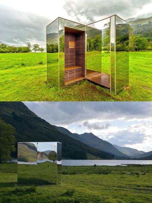Đây là một mô hình nhà làm hoàn toàn bằng gỗ, được bao phủ toàn bộ bởi những tấm gương lớn. Khi chiêm ngưỡng công trình này, bạn sẽ khó có thể phân biệt nó với không gian xung quanh, vì nó gây ảo giác thị giác rất mạnh. Công trình này nằm trong Công viên Điêu khắc Long Island, và nếu không tinh mắt, du khách sẽ rất khó phát hiện ra. Các mặt xung quanh được phủ sợi thủy tinh, mặt tiền làm từ thép và đầu hồi sử dụng polycarbonate. Với ngân sách chỉ 20.000 bảng, Invisible studio đã thiết kế ngôi nhà này bằng những vật liệu tái chế như gỗ từ chất thải xây dựng và gỗ trồng tại địa phương.