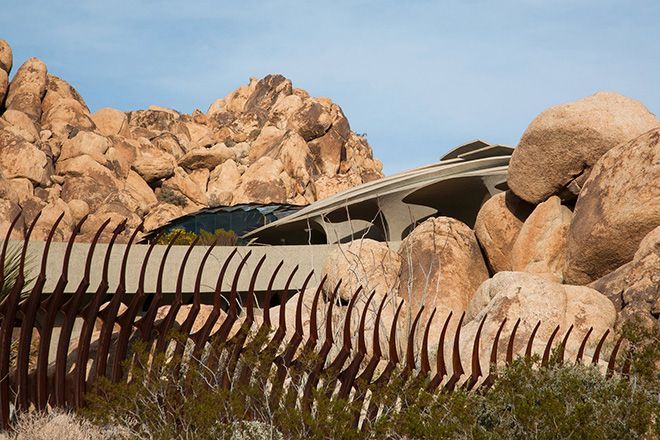 Tọa lạc giữa sa mạc mênh mông, tòa nhà The Desert House của Mỹ gây ấn tượng với thiết kế mái lợp đa lớp, chồng chéo lên nhau. Từ xa, tòa nhà giống như một con tatu khổng lồ nằm giữa lòng sa mạc. Cảnh quan xung quanh là những đụn cát và đá, cùng với cây cỏ khô cằn dưới ánh nắng chiều, tạo nên một khung cảnh huyền bí và khó tả. Mục đích của thiết kế mái nhà là để bảo vệ khỏi những trận gió lớn và giữ nhiệt độ trong nhà ổn định giữa cái nóng oi ả của sa mạc.
