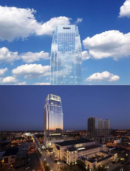 Tòa nhà The Pinnacle tại Nashville, Mỹ là trụ sở của nhiều văn phòng và cửa hàng bán lẻ, nổi bật giữa trung tâm thành phố không chỉ nhờ vào chiều cao ấn tượng mà còn bởi thiết kế cân xứng độc đáo. Tòa tháp này có khả năng ẩn mình vào nền trời xanh trong những ngày hè và tỏa sáng như một tác phẩm nghệ thuật vào ban đêm. Khi chiều buông xuống và ánh hoàng hôn bắt đầu phủ bóng, tòa nhà này vẫn giữ được ánh sáng vàng rực rỡ phản chiếu từ mặt trời cuối ngày.