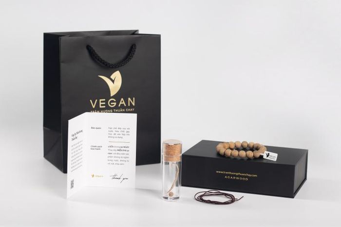 - Sản phẩm vòng trầm hương VEGAN được đóng gói đẹp mắt trong hộp sang trọng, kèm phiếu bảo hành đầy đủ cho từng sản phẩm.