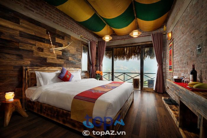 Không gian Viettrekking Sapa kết hợp phong cách hiện đại với kiến trúc gỗ đặc trưng vùng núi Tây Bắc. Các phòng nghỉ được trang bị cửa kính lớn tận dụng ánh sáng tự nhiên và mở rộng tầm nhìn ra núi rừng. Nội thất tinh tế với gam màu ấm, mang lại cảm giác vừa sang trọng vừa gần gũi.