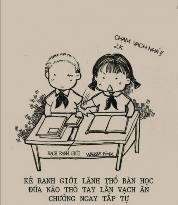 Nhớ những lần, hai đứa ngồi sát nhau, tranh giành từng chút diện tích trên bàn học. Để tránh sự “xâm lấn lãnh thổ”, đứa nào cũng kẻ một đường ranh giới, ai lỡ tay để đồ sang bên của bạn thì ngay lập tức bị cái thước quật vào tay. Nhưng vấn đề sẽ ra sao nếu một bên chiếm hầu hết bàn học mà không hề cố ý?