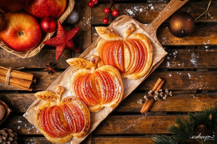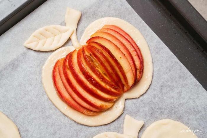 - Bước 5: Xếp táo thành một dãy, chồng một đầu lên nhau rồi cuộn tròn lại.