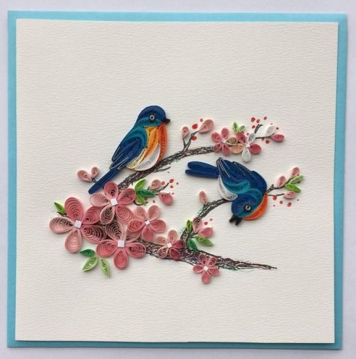 Bông hoa giấy xoắn với hình trái tim tuy đơn giản nhưng vô cùng dễ thương. Bạn có thể dùng những bông hoa này để trang trí thiệp hoặc khung tranh. Nếu muốn, bạn có thể tạo thành chùm hoa, giỏ hoa từ những bông hoa nhỏ xinh này. Chúc bạn thành công với thiệp hoa giấy xoắn cho ngày 8-3!
