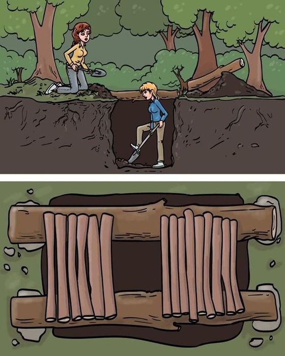 Tiếp theo, đặt các thanh gỗ nhỏ bắc ngang thành hố, để lại khoảng trống để sử dụng và đậy nắp lại. Sau khi sử dụng, phủ lá cây hoặc tro gỗ để ngăn côn trùng xuất hiện.