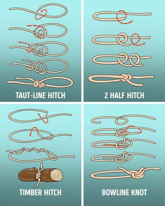 Kiểu 1: Taut-line hitch knot – Nút thắt dây căng có thể điều chỉnh. Phù hợp khi sử dụng để buộc dây lều và neo thuyền.