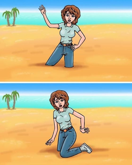 Chuyển trọng lượng cơ thể sang chân phải, rồi nhẹ nhàng lắc chân trái để từ từ đưa nó lên khỏi mặt cát và đặt đầu gối lên trên cát trong tư thế quỳ. Tiếp theo, bạn chuyển trọng lượng sang chân trái đang quỳ, lắc chân phải và nghiêng người về phía trước để có thể đưa chân phải lên và di chuyển ra khỏi cát.