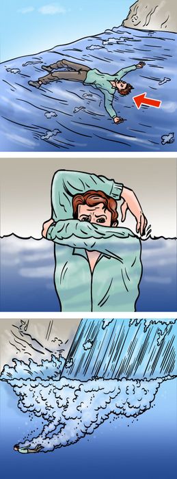 Trước hết, bạn nên nhanh chóng tìm và nắm lấy bất kỳ vật gì xung quanh như khúc gỗ hay một vật cứng khác để giúp bản thân không bị cuốn trôi thêm. Dù nước có nông đến đâu, bạn cũng không nên đứng lên và cố gắng bước ra bờ vì có thể dòng nước sẽ kéo bạn lại. Vì vậy, hãy kiên nhẫn bám vào vật cứng và từ từ bơi vào bờ gần nhất.