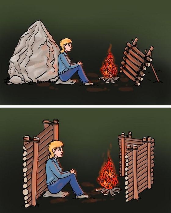 Khi ngồi dựa vào một tảng đá hoặc cây, nhiệt từ ngọn lửa sẽ được phản xạ từ phía sau, giúp lưng của bạn cảm nhận được hơi ấm nhờ vào tác dụng như một tấm phản xạ nhiệt thứ hai.
