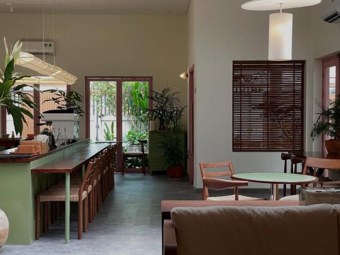 Quán phân chia rõ ràng khu vực cà phê và khu ăn uống, giúp không gian luôn thoáng đãng và không bị lẫn mùi thức ăn, điểm cộng lớn giúp khách cảm thấy thoải mái hơn khi thưởng thức đồ uống. Khu vực ngồi riêng tư, mảng xanh tươi mát tạo cảm giác thư giãn, là nơi lý tưởng để trò chuyện nhẹ nhàng hoặc tận hưởng những phút giây bình yên.