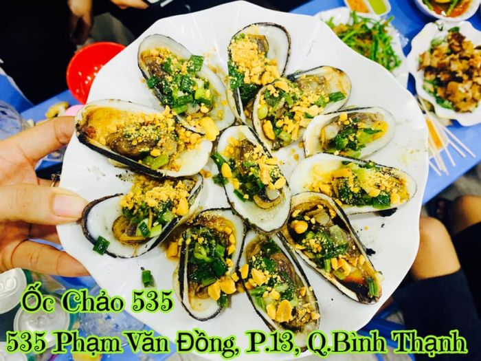 Địa điểm tiếp theo mà Mytour muốn giới thiệu đến bạn là quán ốc chảo 535, nằm tại đường Phạm Văn Đồng. Tại Ốc Chảo 535, thực đơn vô cùng phong phú với nhiều loại ốc được chế biến độc đáo như: ốc len xào dừa, răng mực, ốc móng tay xào rau muống, ốc mỡ, ốc giác, ốc tỏi bơ, sò huyết xào me, ốc hương rang muối và nghêu hấp Thái,…